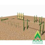 The 9 Unit Shape Course includes new fitness events including the Rope Climb. Offer children an action packed playground without the high cost of a structure. Great for any outdoor area with a large open space or around a walking path. Included is a Rope Climb, Tire Challenge, AAA Playground Twister Beam, Over/Under Bars, Agility Poles, S Horizontal Ladder, Ring Climber, Parallel Climber, and Stepping Stones. Comes powder coat painted or galvanized steel. Choose a color below or call us for an alternative color combination.