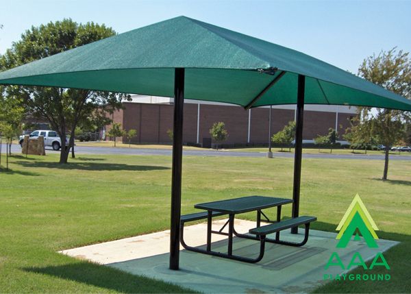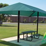 Designed for picnic areas, sporting areas, or even spots at the park or playground, the Dual Column Rectangular Umbrella Shade Shelter provides added comfort on those hot, sunny days. The shade fabric, available in twelve striking colors, is designed to protect users from the sun’s harmful rays. The long design of the shade allows it to easily stretch over picnic tables, sports bleachers, or other areas shade is desired. The dual posts provide a sturdy support for the shade frame, while also leaving plenty of space underneath. The Dual Column Rectangular Umbrella Shade Shelter is available with or without glide elbows. By choosing glide elbows, installing and removing the shade fabric is made easier. Why would you need to remove the fabric? Your fabric shade will last longer if it is removed in bad weather. Place this shade in your area and your patrons will immediately find comfort.
