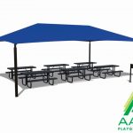 The Outdoor Social Distancing Environment: Table Package by AAA Playground is a great solution for those still needing to organize small gatherings of people during this time of high medical concern. The overhanging Rectangular Shade Shelter is a large protective covering sized 30-feet x 20-feet with an 8-foot entrance. This sizable roof protects those under it from the elements, while also allowing for appropriate 6-foot spacing between each of the six included tables, as advised by the Centers for Disease Control and Prevention. The resilient AAA Playground Rectangular Portable Tables employ expanded metal surfacing that helps the units dry quickly. Also included is a Post-Mounted Hand Sanitizer Holder that is compatible with 42 oz. lever and automatic dispensers (sanitizer is not included), so there’s no need to worry about not having nearby access to running water. Finally, the package comes with a lidded 32 Gallon AAA Playground Standard Trash Receptacle that is finished with a tough layer of textured polyethylene (liner sold separately). Pick up this all-in-one package today to help your organization coordinate in a safer way while providing access to the psychological boost of being outdoors.
