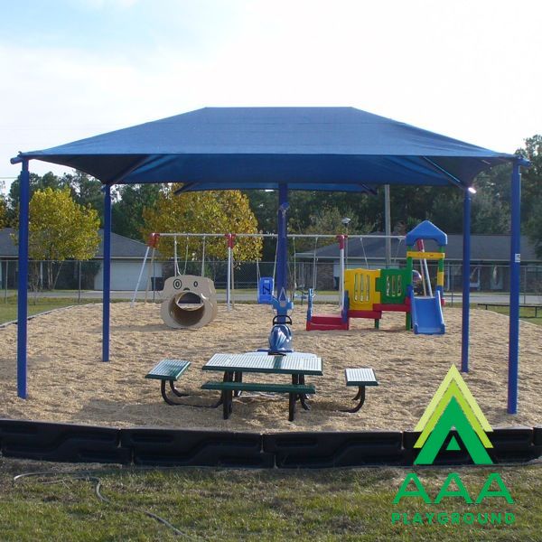 Children love to play outside even when the sun is shining down, bright and hot. Often times, sunscreen is the only thing that protects children from the sun’s rays as they play. The installation of a shade structure not only protects adults and children from the sun, but it also protects any equipment it covers. The Square Shade Shelter with 8 feet high Entrance Height comes in a wide variety of sizes, meaning it is able to shade a wide variety of items. The most common uses for the Square Shade Shelter are covering small structures, sand boxes, and small picnic areas, though the shade can prove useful in many settings. You have the option of choosing a shade with or without glide elbows. Glide elbows assist in the installation of the shade as well as quick removal in the case of inclement weather. The Square Shade Shelter features a heavy duty fabric that is available in various colors, so you are sure to find a color to fit in with your setting.