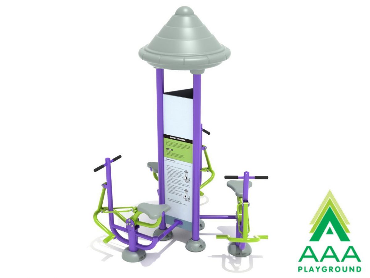 The Triple Royal Fit Rider is a great way to supplement any outdoor fitness area. A full body workout, as well as a great cardiovascular workout for the elderly, young adults and teenagers ready to break a sweat. This piece of fitness equipment provides individuals with a low impact workout that diminishes the strain on muscles. Also, it offers a way to quickly burn calories, build stamina, and develop upper and lower body coordination. The units’ function is outlined on the attached instructional guide. The basics are that individuals hold themselves off the ground and bend their arms as their weight is pulled down by gravity. Repeating the process nets long lasting health benefits. The unit is made of weather-resisting materials like steel that has been powder-coat painted and plastic that has been rotationally molded. The Triple Royal Fit Rider will guide you into a healthier lifestyle.