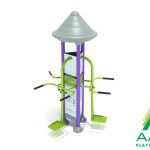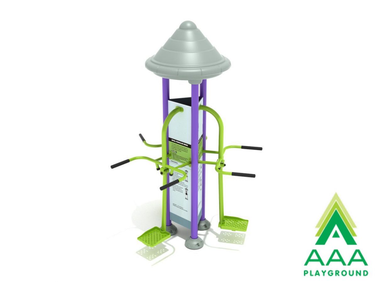 The Triple Royal Pendulum Swing combines fun and exercise into one distinct unit. Its low impact workout strengthens and tones the core and hip muscles, specifically the abdominal muscles and obliques. These benefits can be shared with two other people. Allowing more people to workout together increases motivation, exertion, and fun. The Royal Pendulum Swing accommodates two users at once and the Single Wide Pendulum Swing is a solo experience. This unit is built with powder-coat painted steel and rotationally-molded plastic. The standing platform is perforated to prevent water build up and increase grip. At the center of the equipment is an instructional guide that details the correct way to use the unit. This eliminates any confusion and makes exercise the primary focus. A new and improved you awaits.